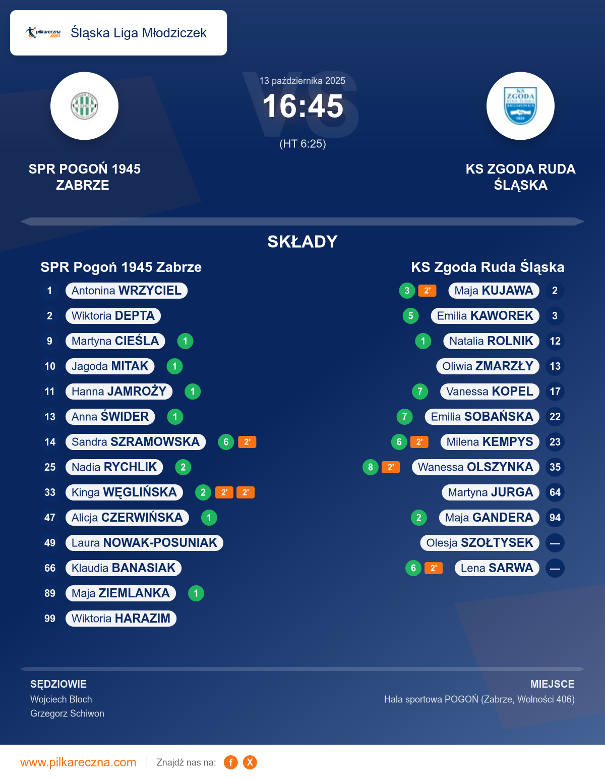 Zawodnicy: Wanessa Olszynka (8), Emilia Sobańska (7), Vanessa Kopel (7), Lena Sarwa (6), Milena Kempys (6), Emilia Kaworek (5), Maja Kujawa (3), Maja Gandera (2), Natalia Rolnik (1), Martyna Jurga, Olesja Szołtysek, Oliwia Zmarzły