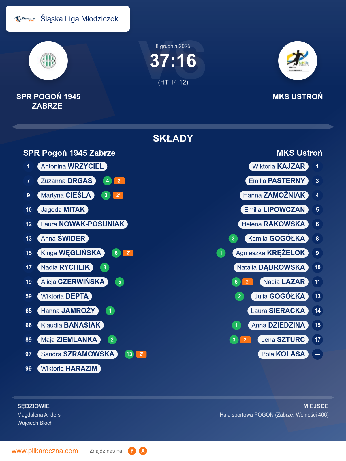 SPR Pogoń 1945 Zabrze 37–16 MKS Ustroń