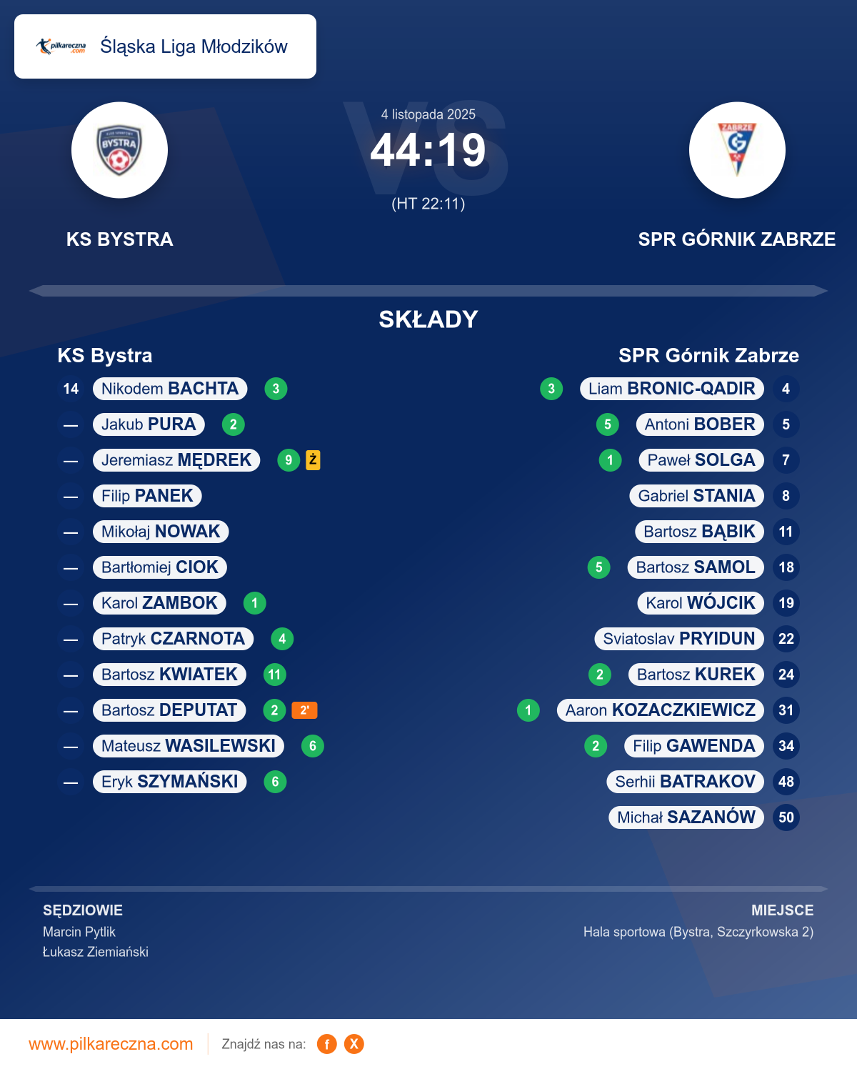 Sędziowali: Marcin Pytlik, Łukasz Ziemiański