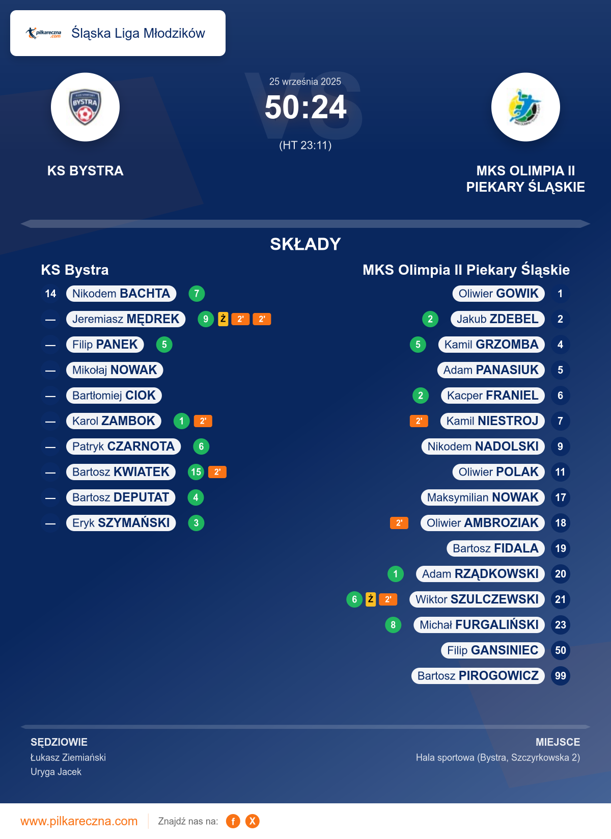 KS Bystra 50–24 MKS Olimpia II Piekary Śląskie