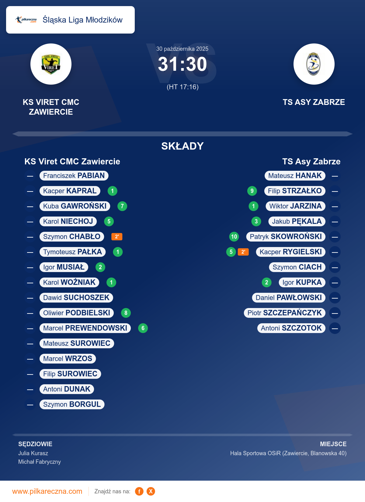 KS Viret CMC Zawiercie 31–30 TS Asy Zabrze