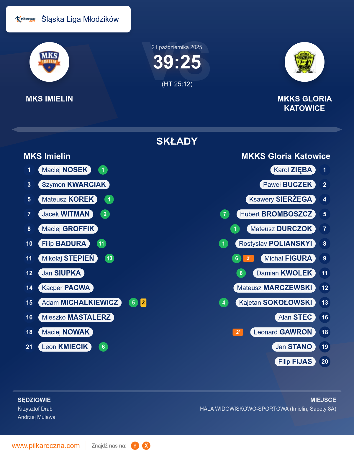MKS Imielin 39–25 MKKS Gloria Katowice