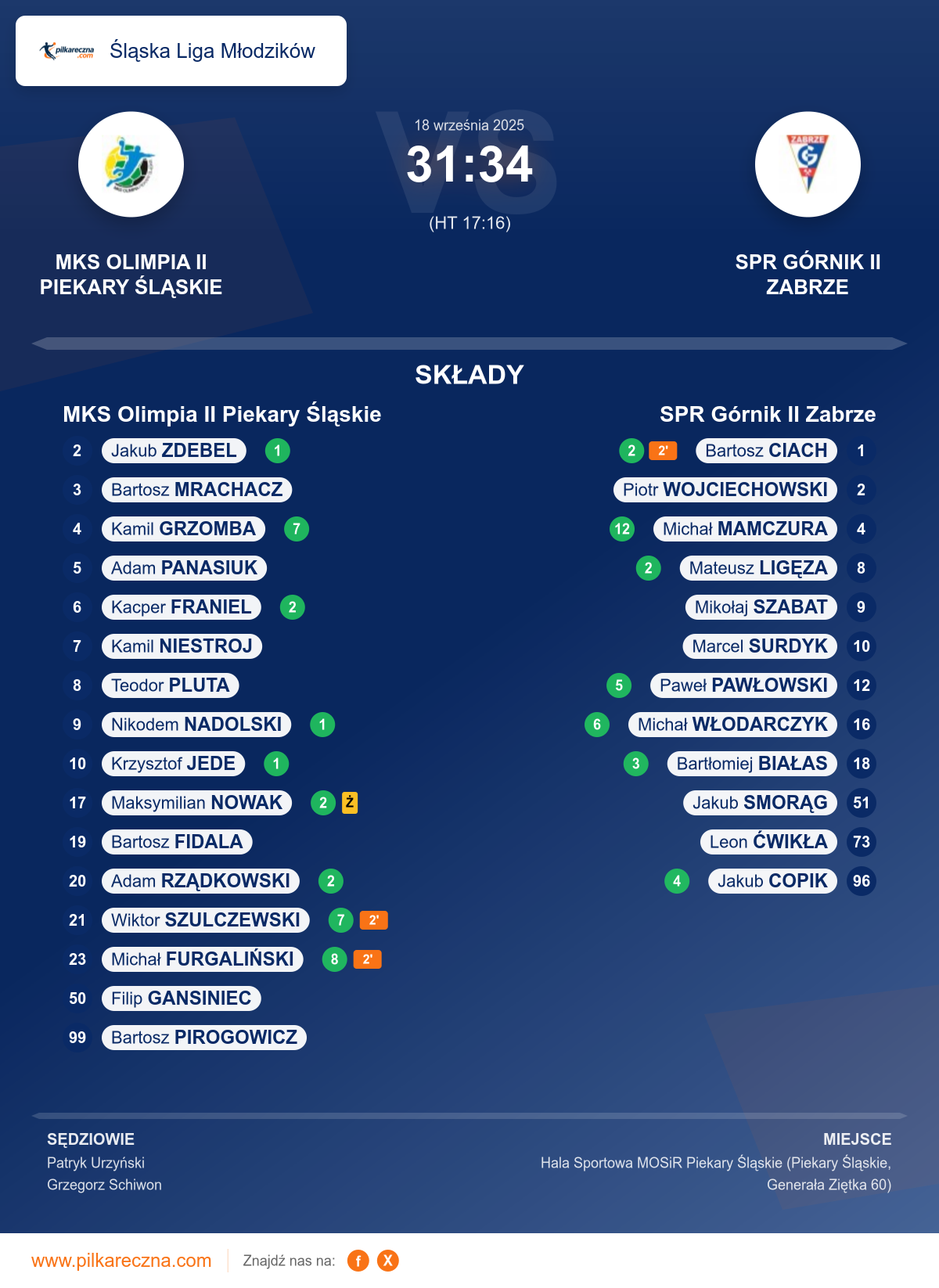 Sędziowali: Patryk Urzyński, Grzegorz Schiwon