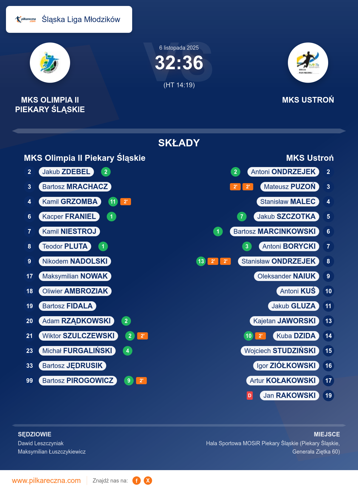 Sędziowali: Dawid Leszczyniak, Maksymilian Łuszczykiewicz