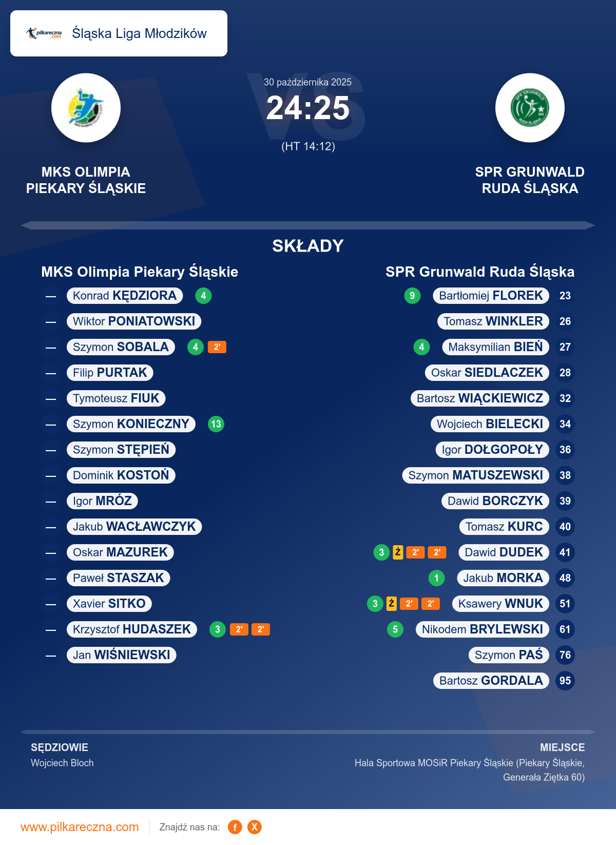 MKS Olimpia Piekary Śląskie 24–25 SPR Grunwald Ruda Śląska