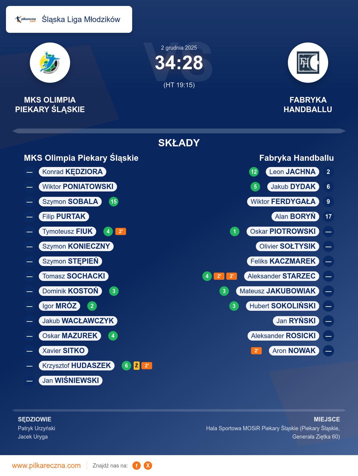 Sędziowali: Patryk Urzyński, Jacek Uryga