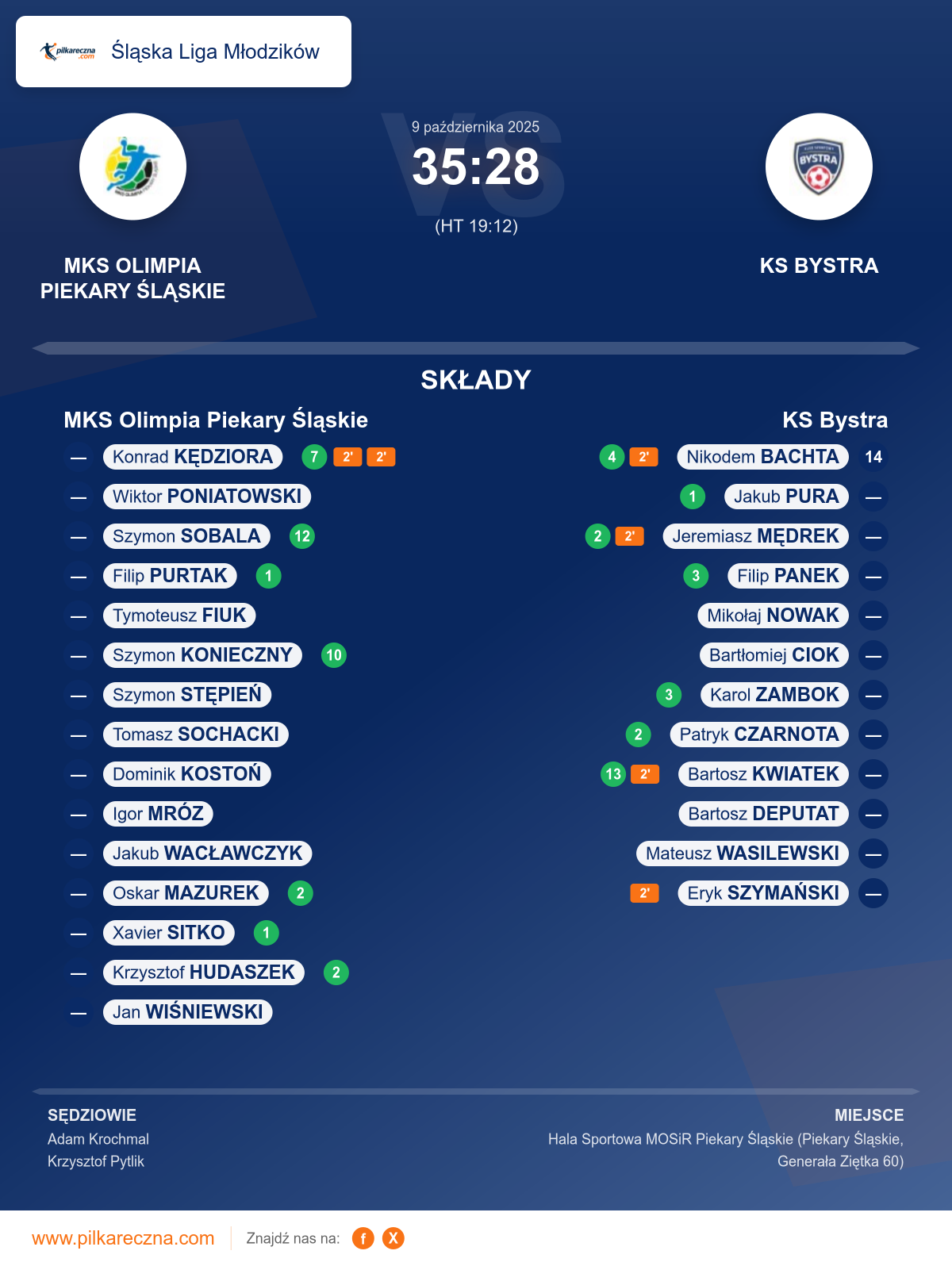 Sędziowali: Adam Krochmal, Krzysztof Pytlik