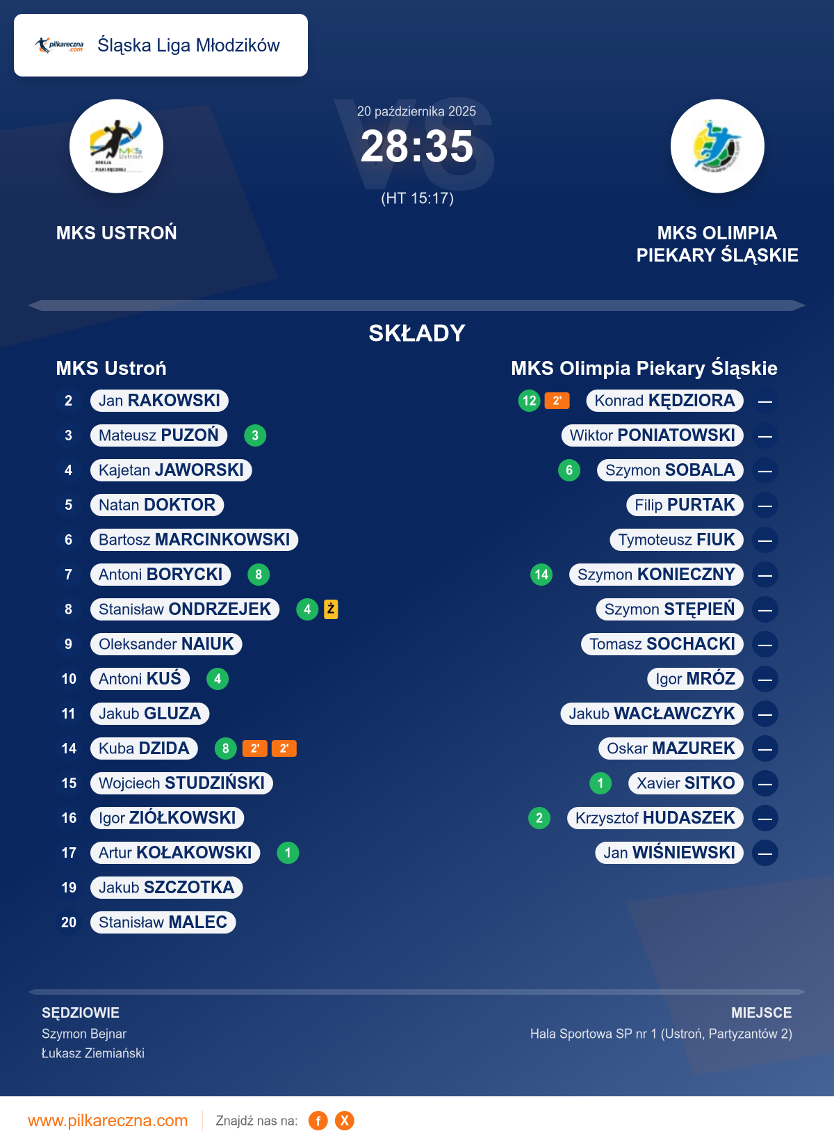 MKS Ustroń 28–35 MKS Olimpia Piekary Śląskie