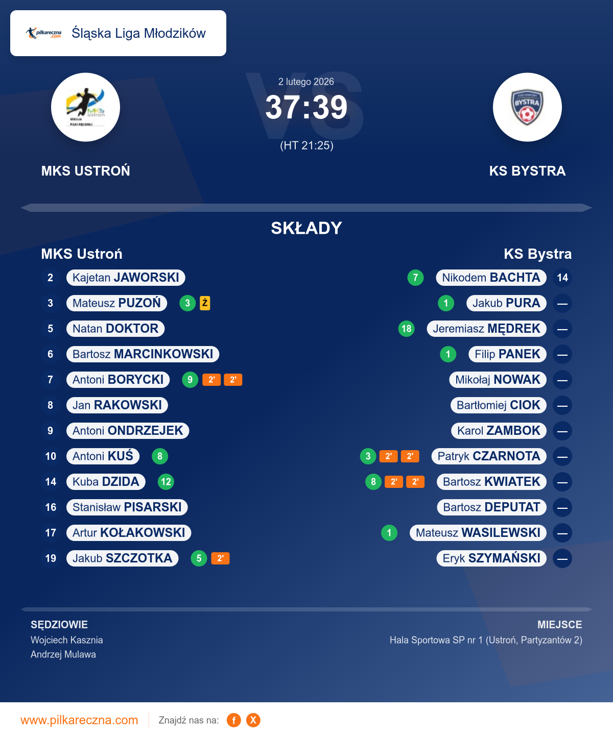 Zawodnicy: Jeremiasz Mędrek (18), Bartosz Kwiatek (8), Nikodem Bachta (7), Patryk Czarnota (3), Filip Panek (1), Jakub Pura (1), Mateusz Wasilewski (1), Bartosz Deputat, Eryk Szymański, Karol Zambok