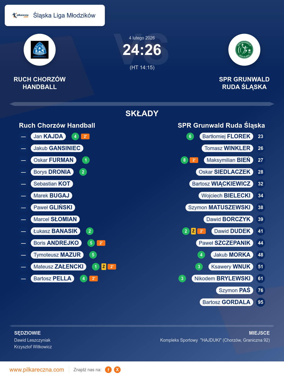 Wynik: 24–26 (HT 14–15)
