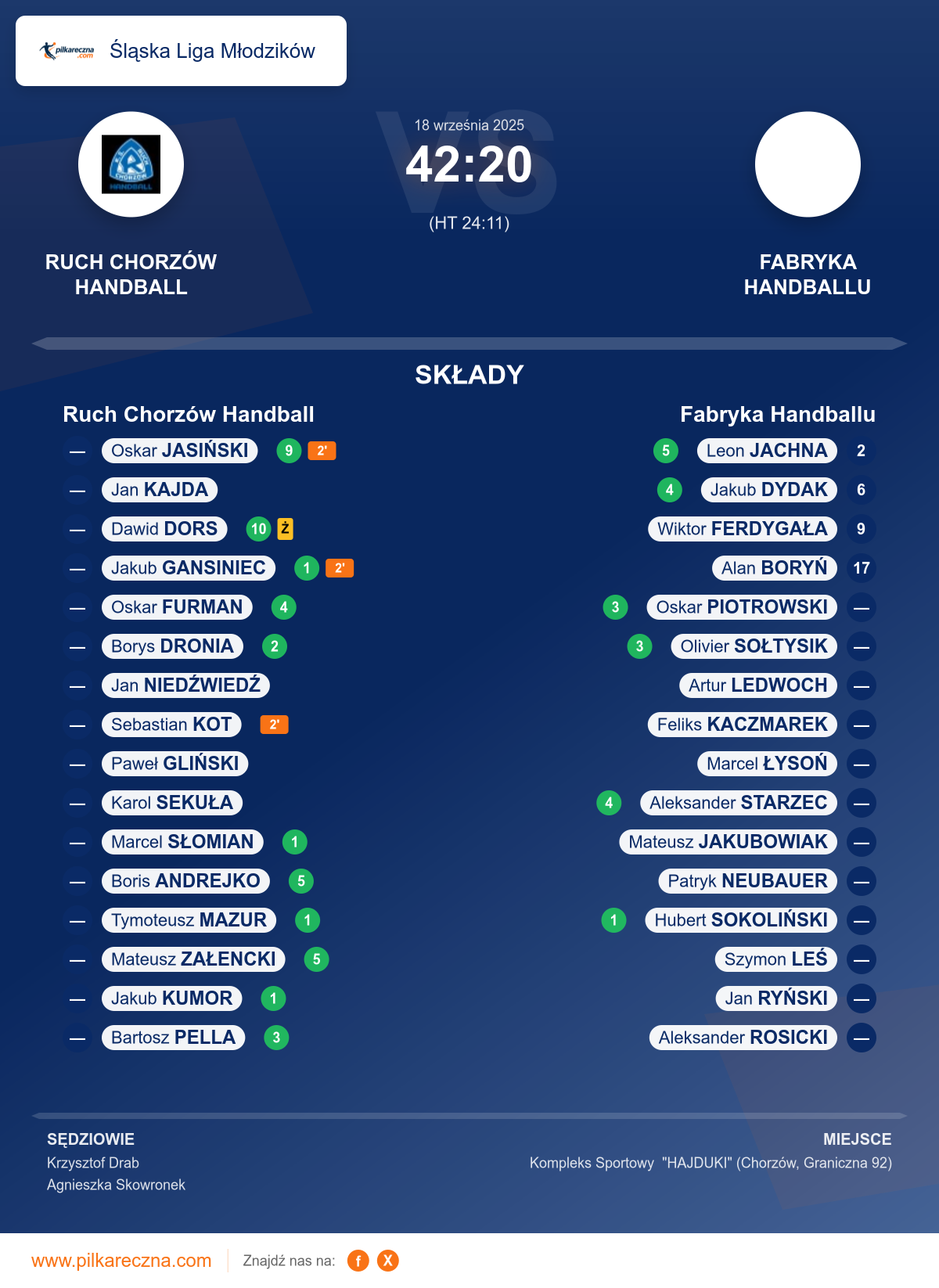 Ruch Chorzów Handball 42–20 Fabryka Handballu