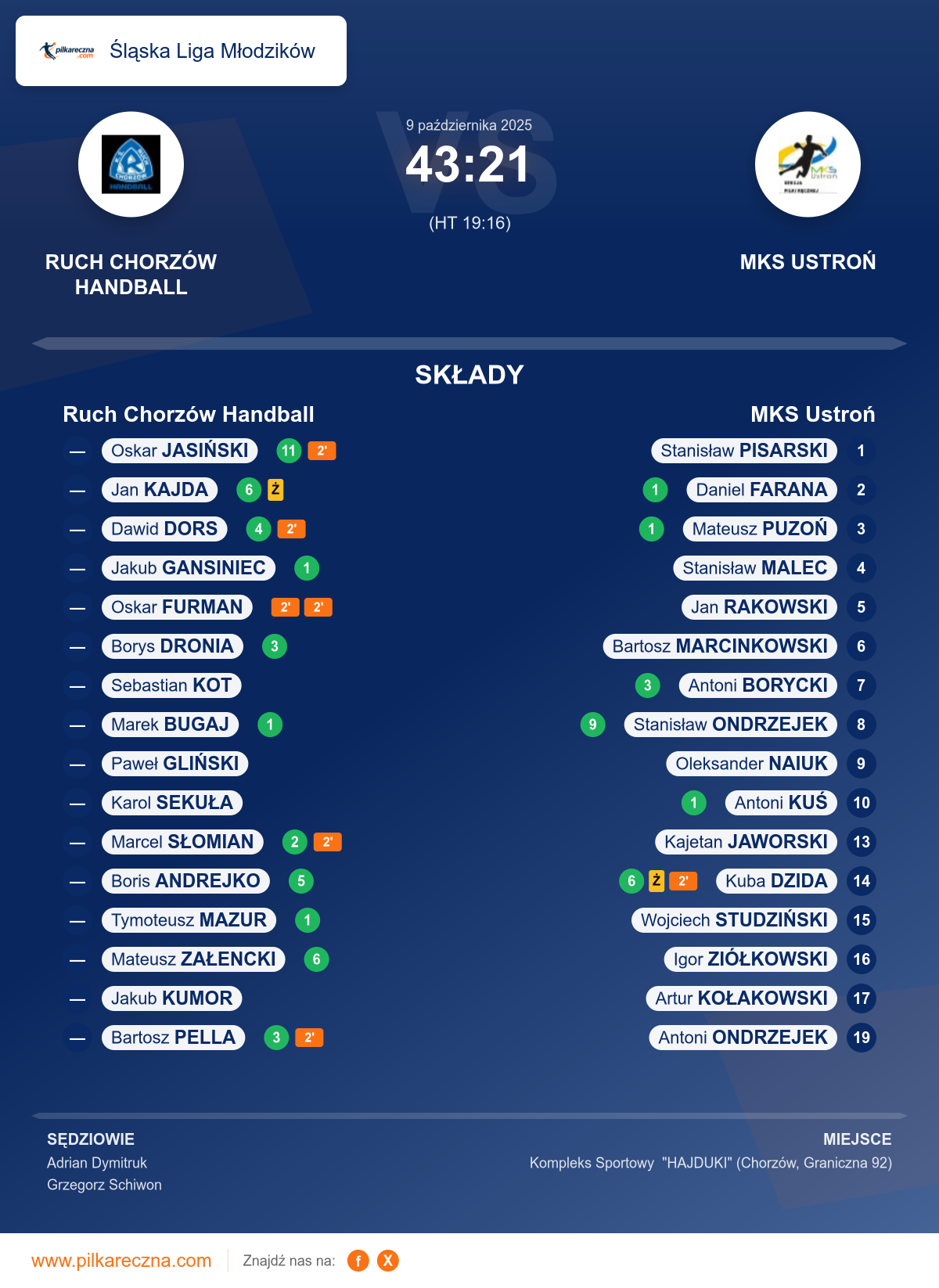 Wynik: 43–21 (HT 19–16)