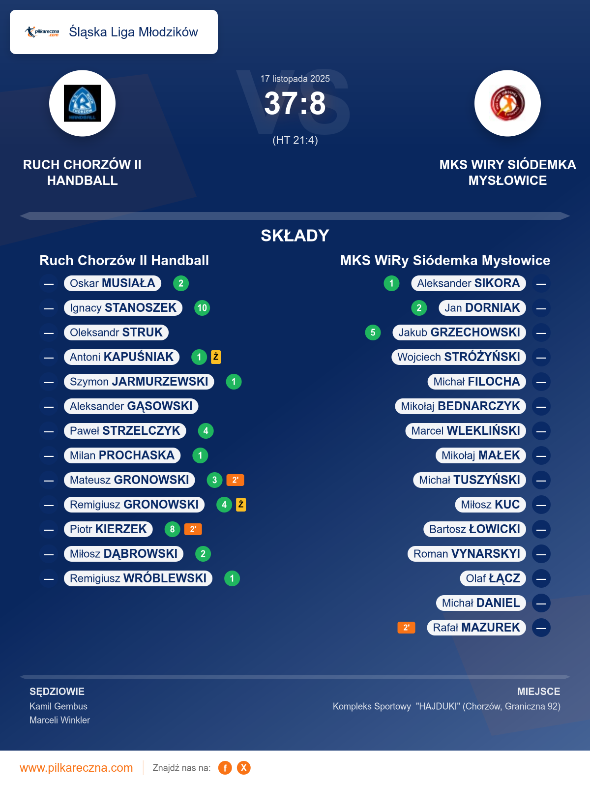 Ruch Chorzów II Handball 37–8 MKS WiRy Siódemka Mysłowice