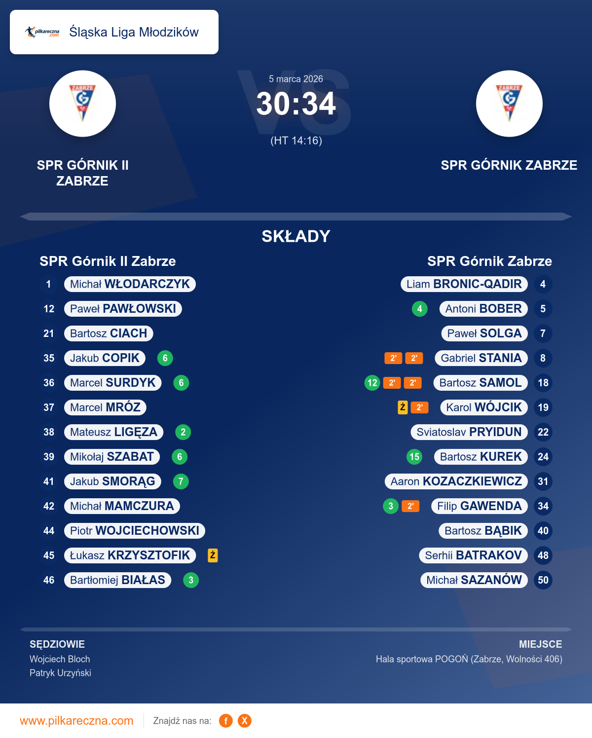 Sędziowali: Wojciech Bloch, Patryk Urzyński