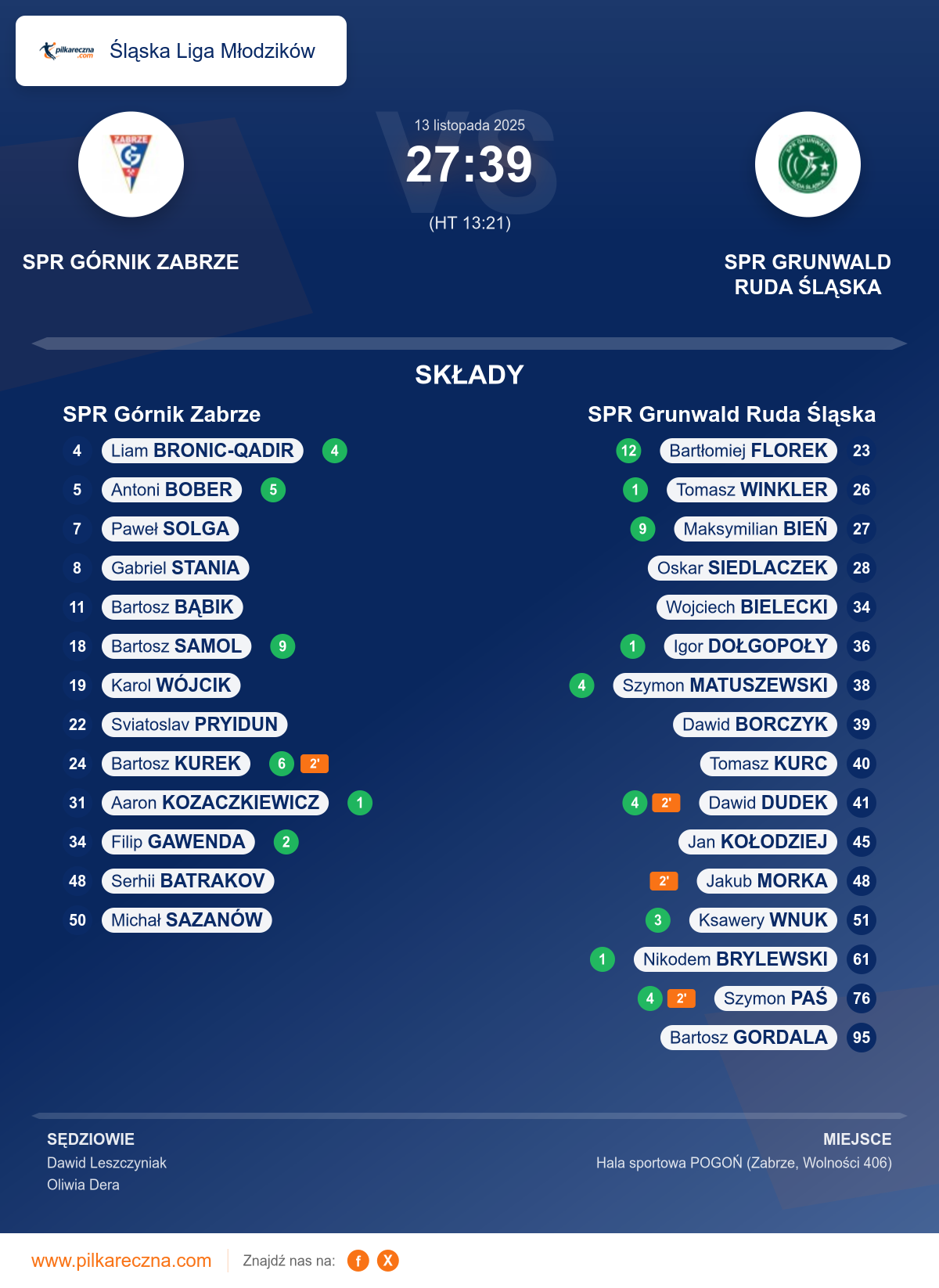 Sędziowali: Dawid Leszczyniak, Oliwia Dera