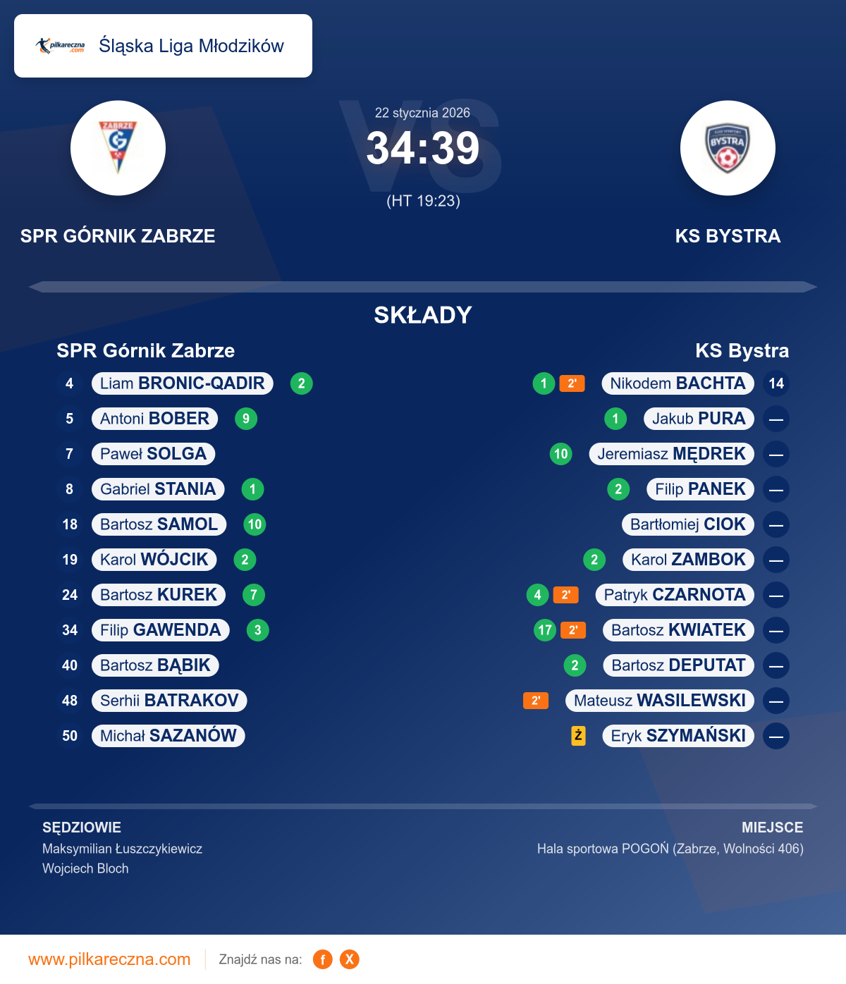 Zawodnicy: Bartosz Kwiatek (17), Jeremiasz Mędrek (10), Patryk Czarnota (4), Bartosz Deputat (2), Filip Panek (2), Karol Zambok (2), Jakub Pura (1), Nikodem Bachta (1), Eryk Szymański, Mateusz Wasilewski