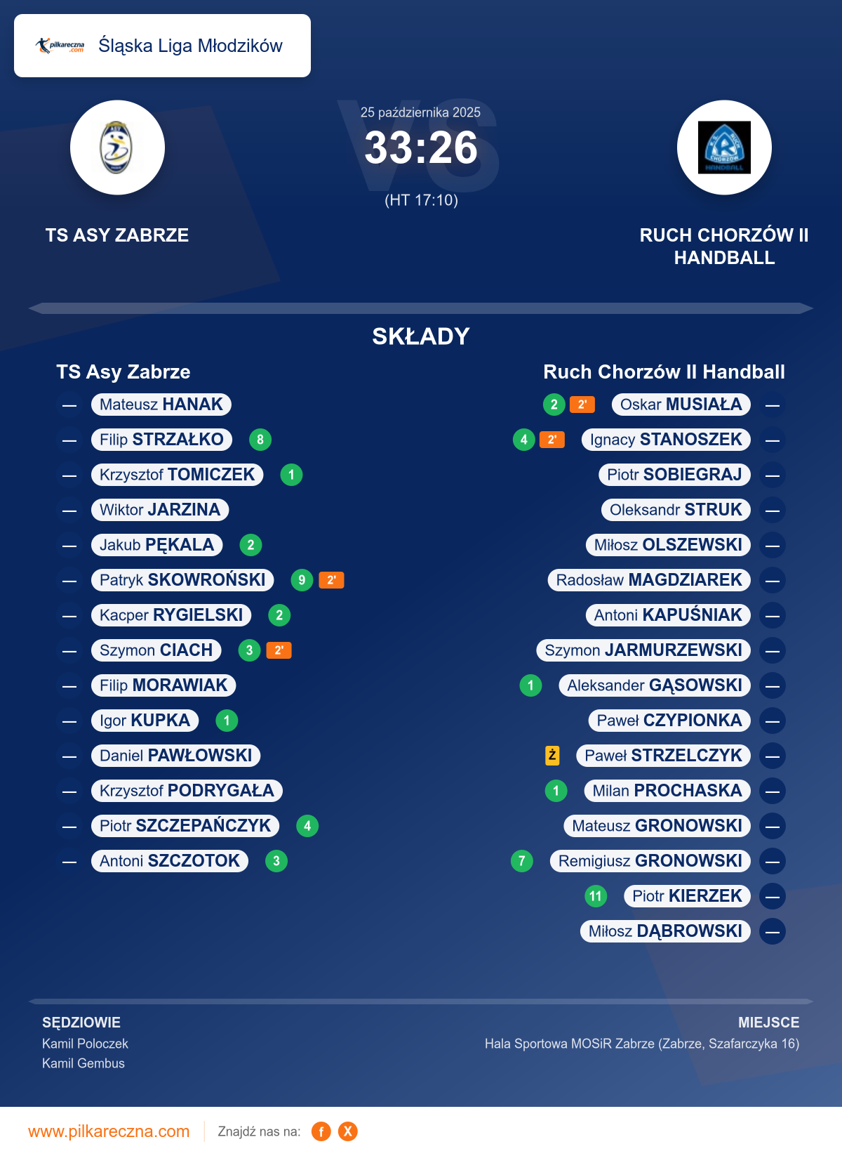 TS Asy Zabrze 33–26 Ruch Chorzów II Handball