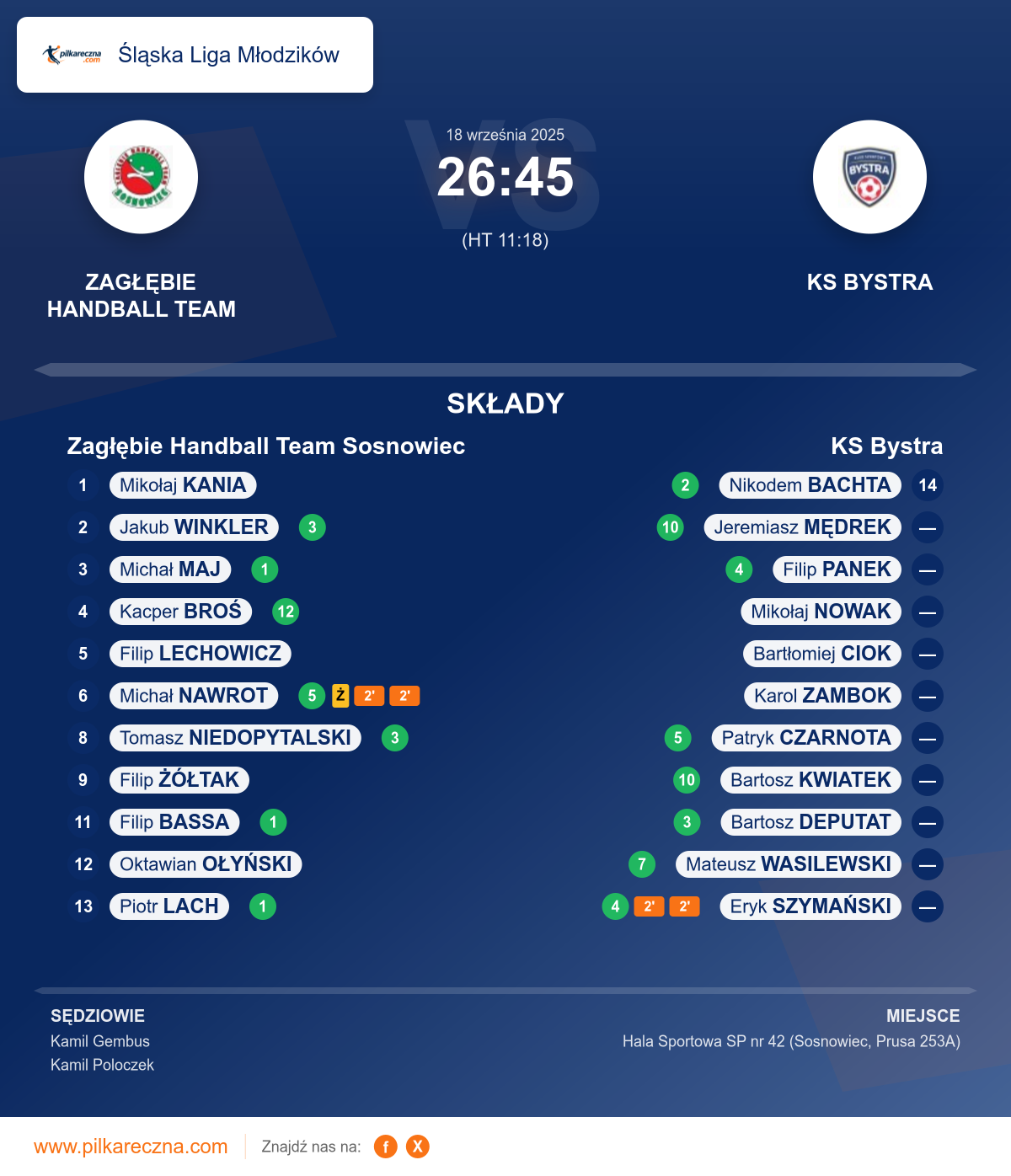 Zagłębie Handball Team Sosnowiec 26–45 KS Bystra