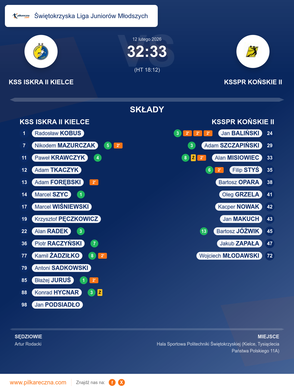 Wynik: 32–33 (HT 18–12)
