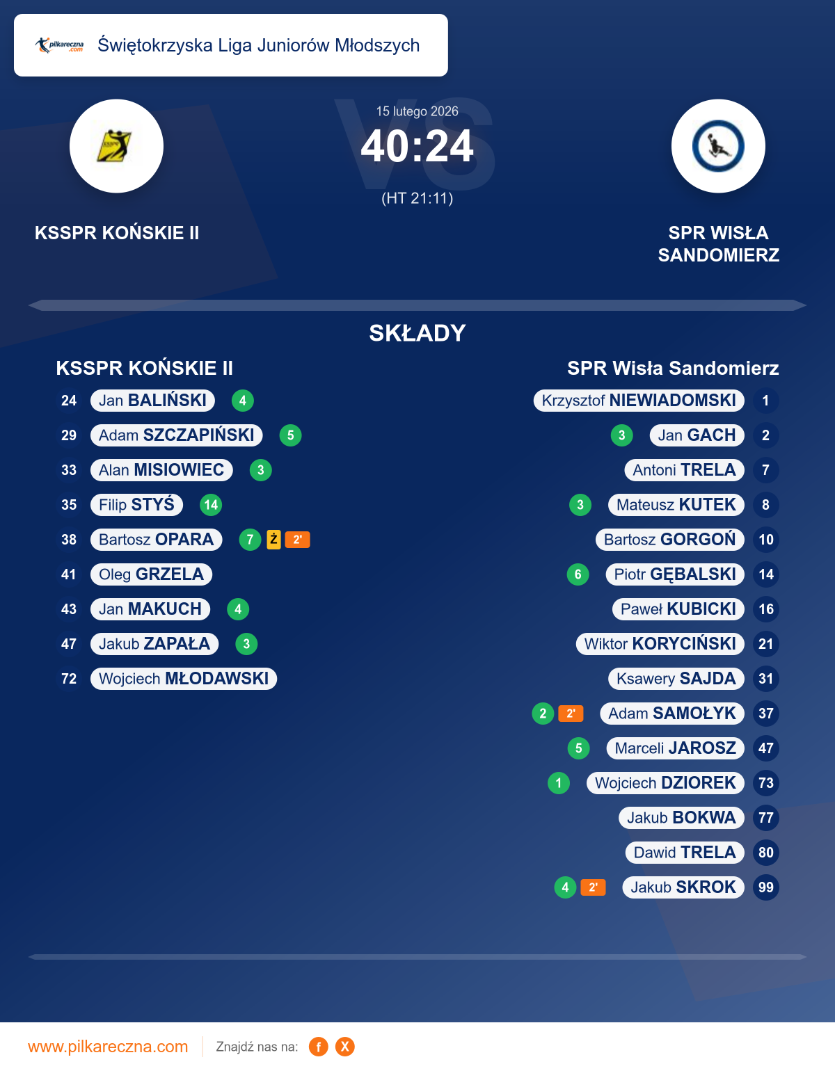 Wynik: 40–24 (HT 21–11)