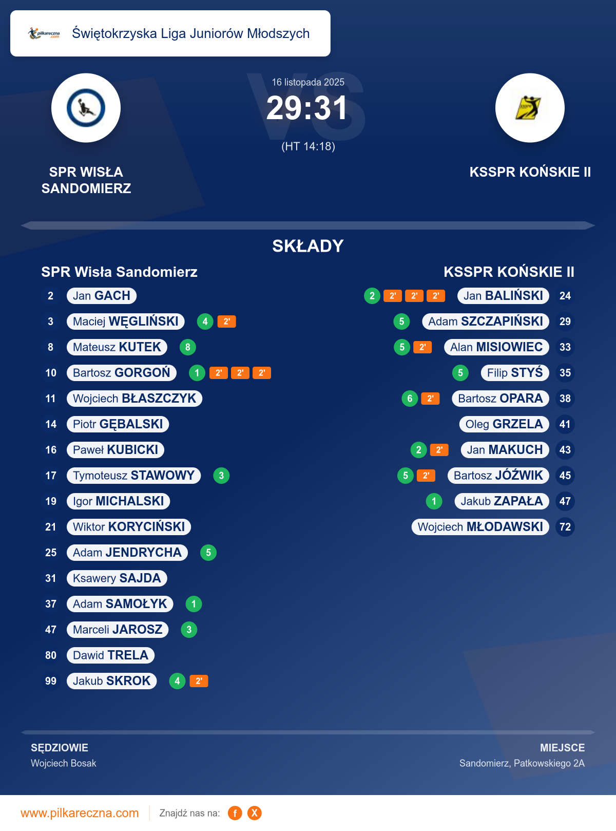 SPR Wisła Sandomierz 29–31 KSSPR KOŃSKIE II