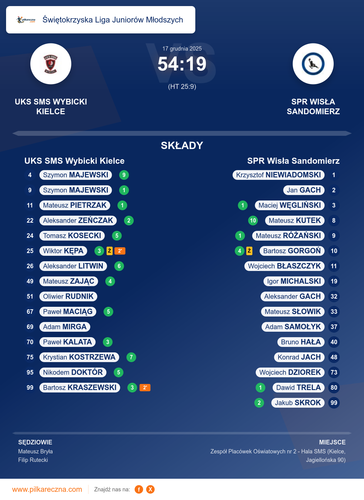 UKS SMS Wybicki Kielce 54–19 SPR Wisła Sandomierz