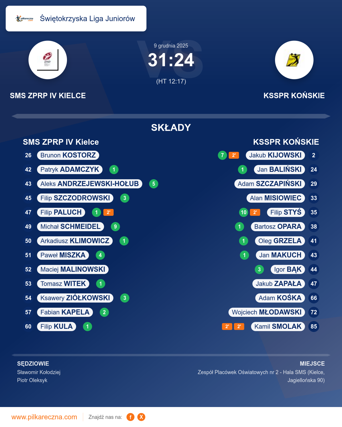 SMS ZPRP IV Kielce 31–24 KSSPR KOŃSKIE