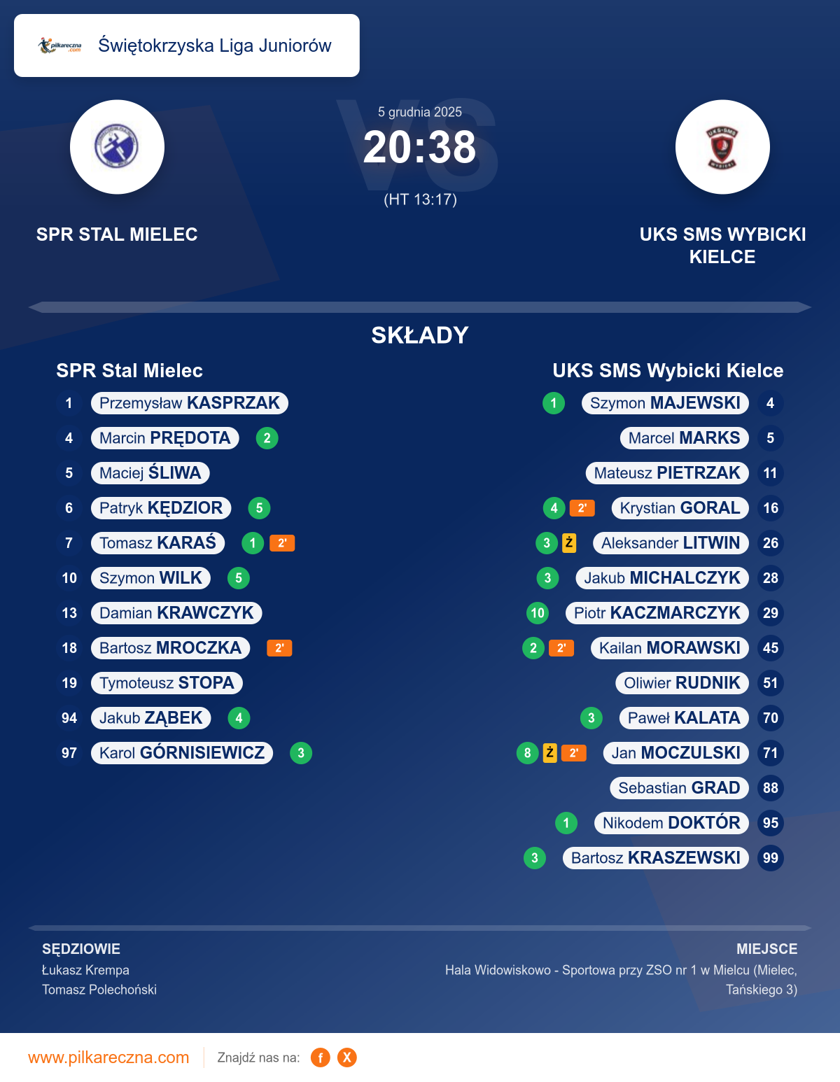 SPR Stal Mielec 20–38 UKS SMS Wybicki Kielce