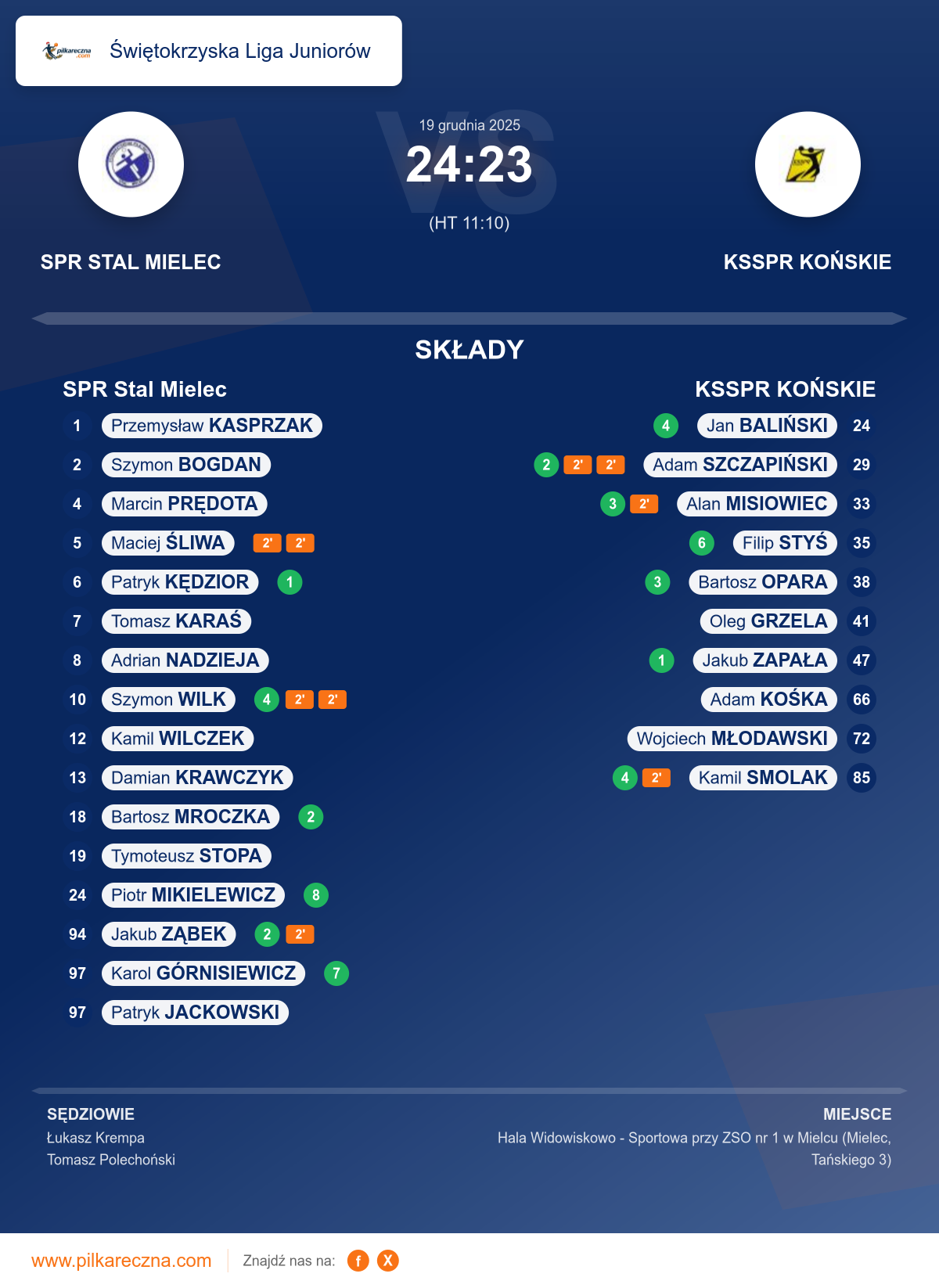 Wynik: 24–23 (HT 11–10)