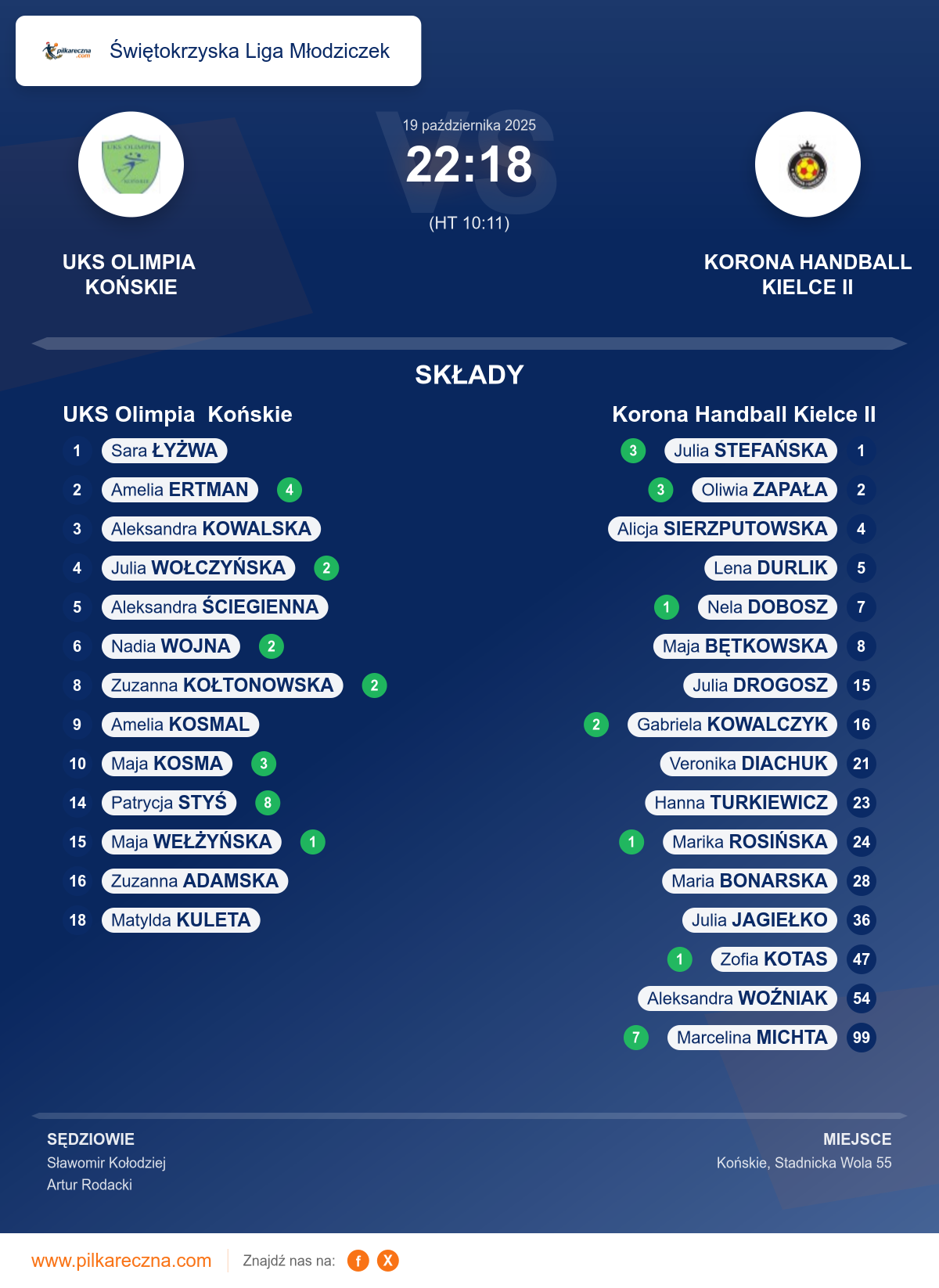 UKS Olimpia Końskie 22–18 Korona Handball Kielce II