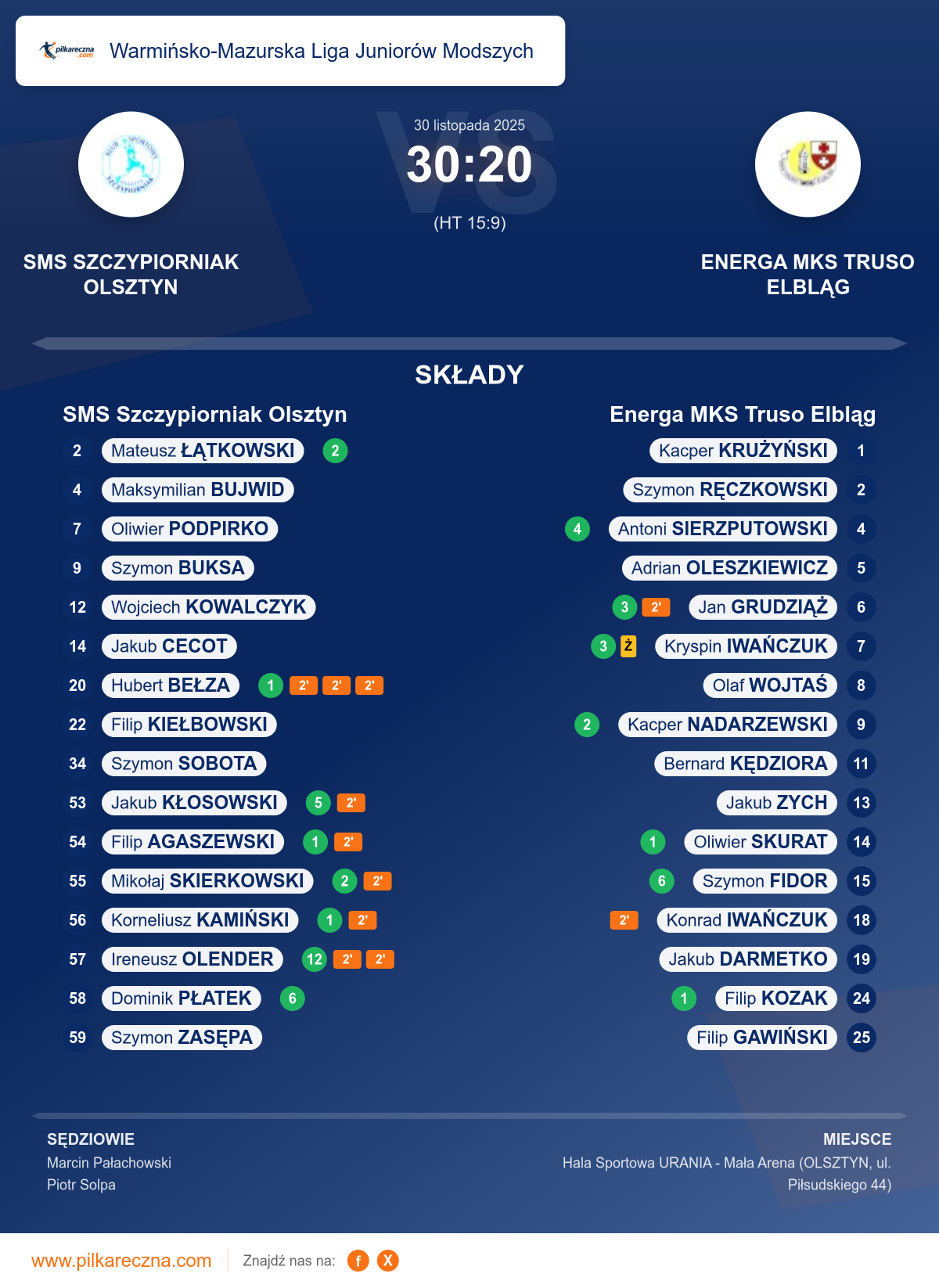 Wynik: 30–20 (HT 15–9)