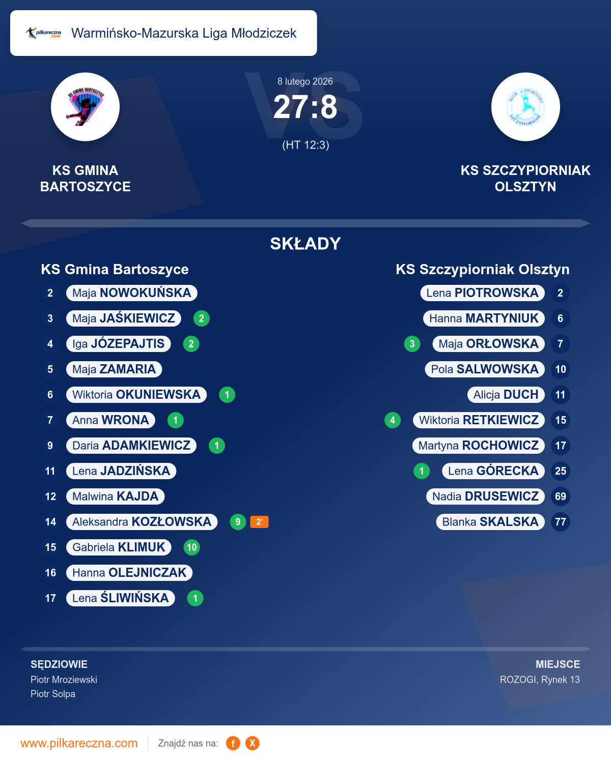 KS Gmina Bartoszyce 27–8 KS Szczypiorniak Olsztyn