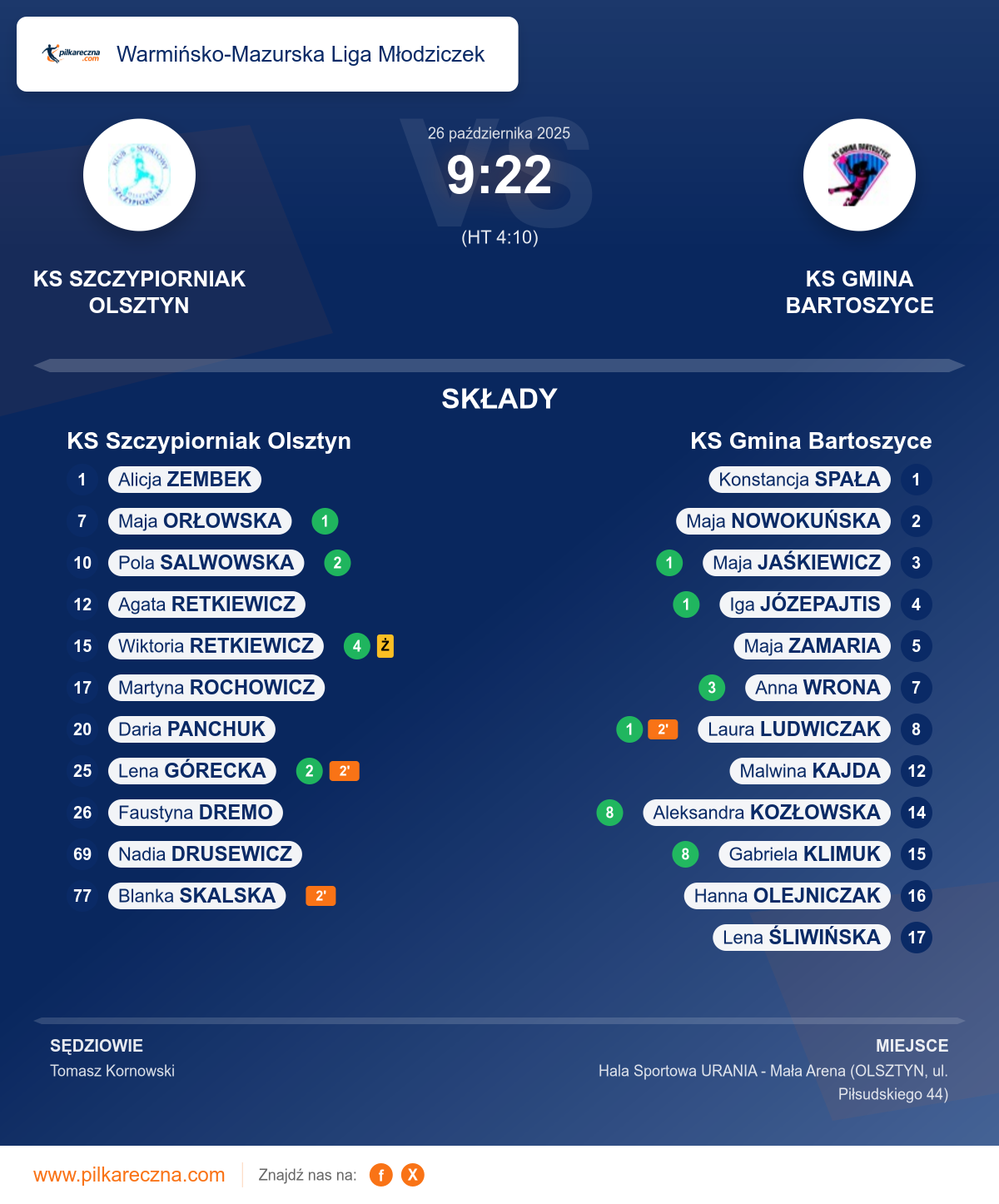 KS Szczypiorniak Olsztyn 9–22 KS Gmina Bartoszyce