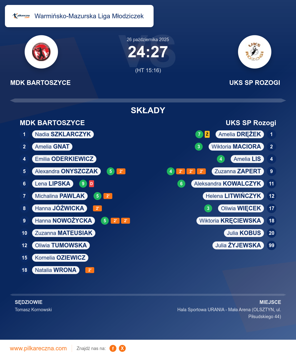 MDK BARTOSZYCE 24–27 UKS SP Rozogi