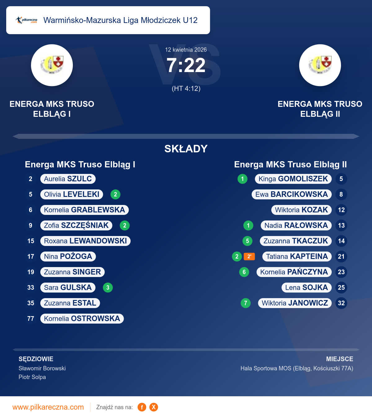 Energa MKS Truso Elbląg I 7–22 Energa MKS Truso Elbląg II