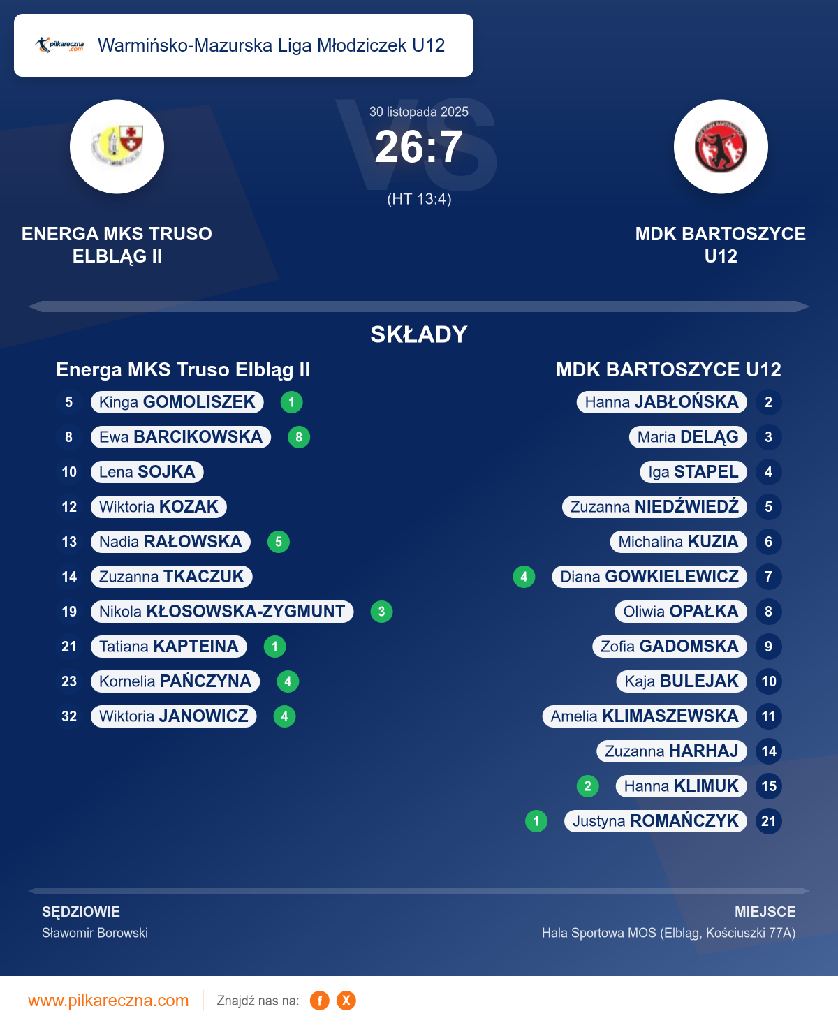 Energa MKS Truso Elbląg II 26–7 MDK BARTOSZYCE U12