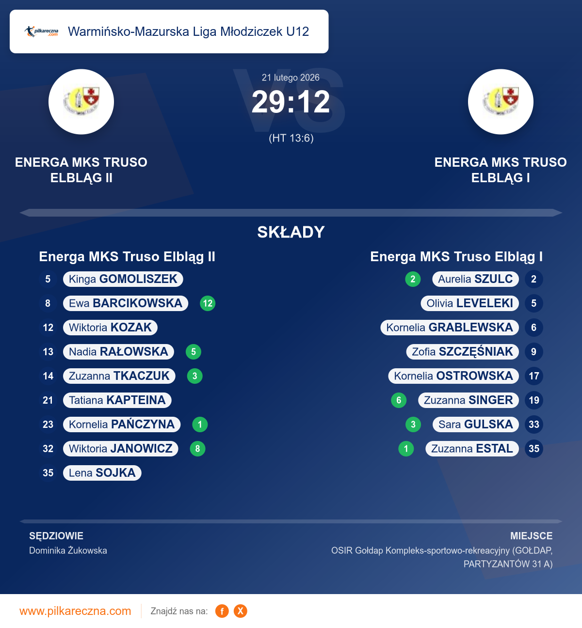 Energa MKS Truso Elbląg II 29–12 Energa MKS Truso Elbląg I