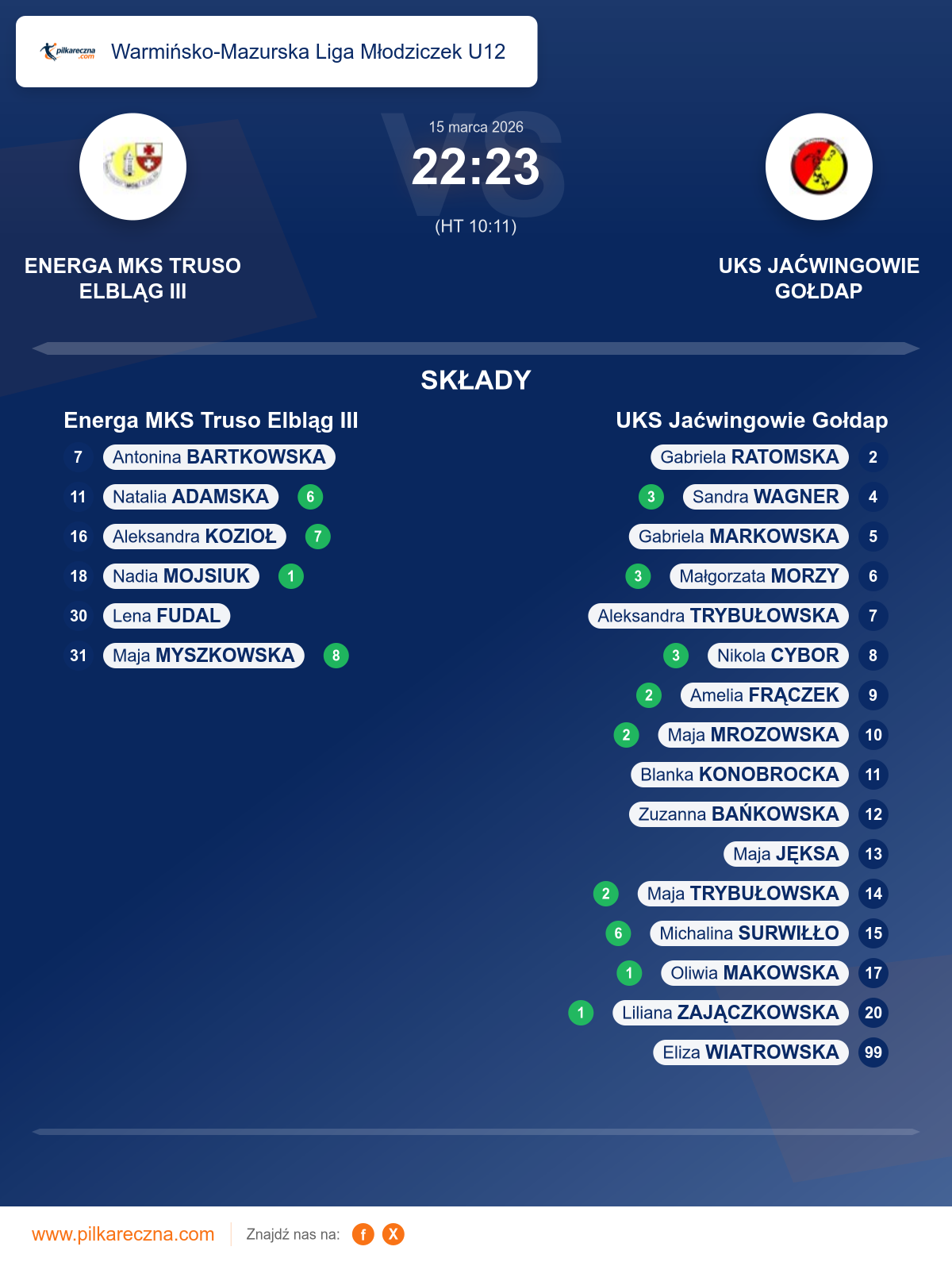 Energa MKS Truso Elbląg III 22–23 UKS Jaćwingowie Gołdap