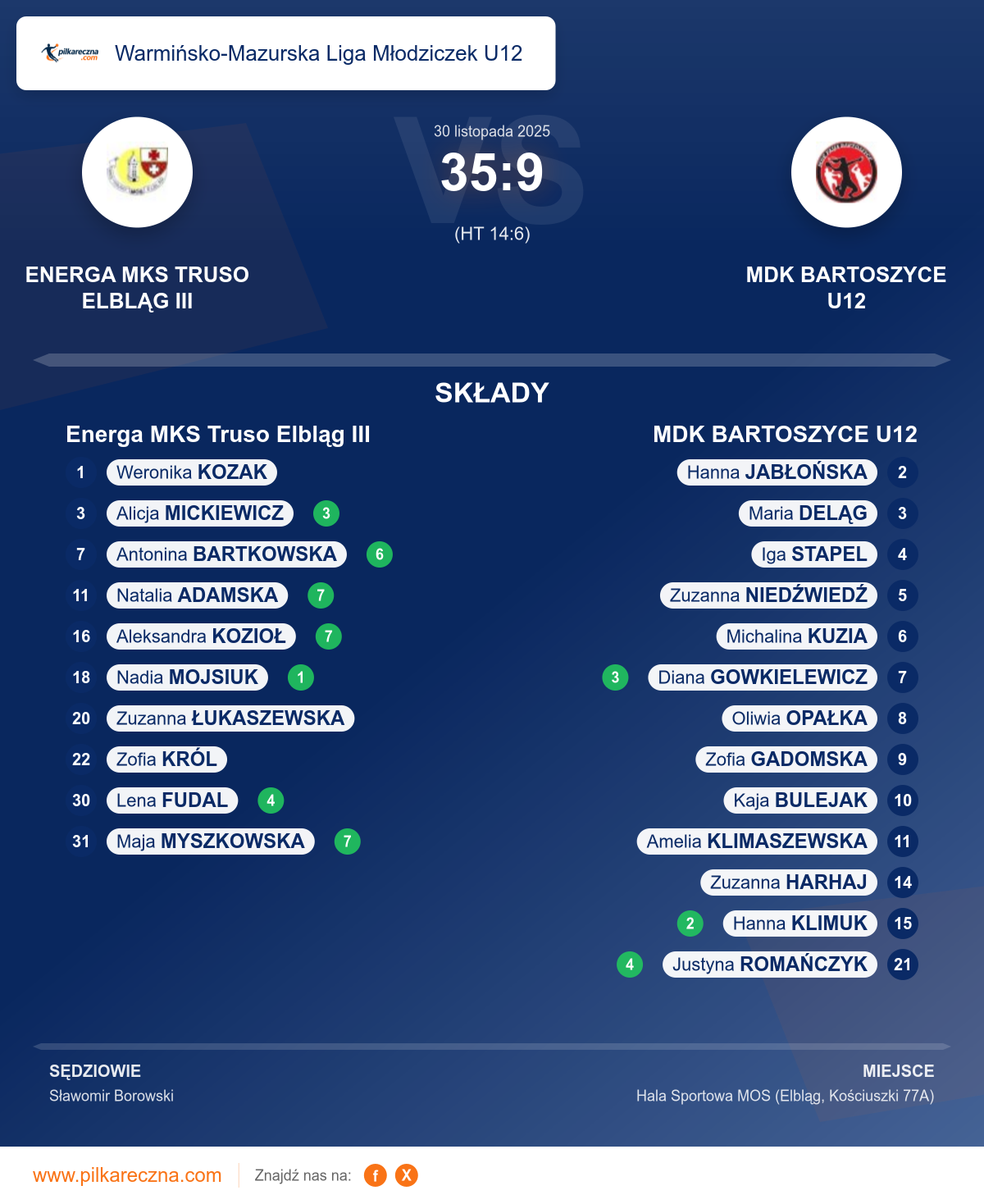 Energa MKS Truso Elbląg III 35–9 MDK BARTOSZYCE U12