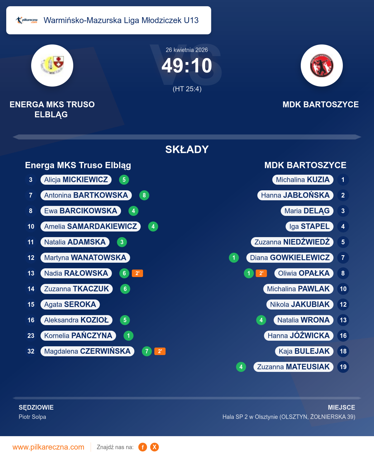 Energa MKS Truso Elbląg — MDK BARTOSZYCE