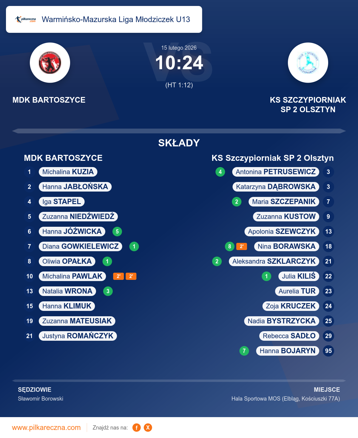 MDK BARTOSZYCE — KS Szczypiorniak SP 2 Olsztyn