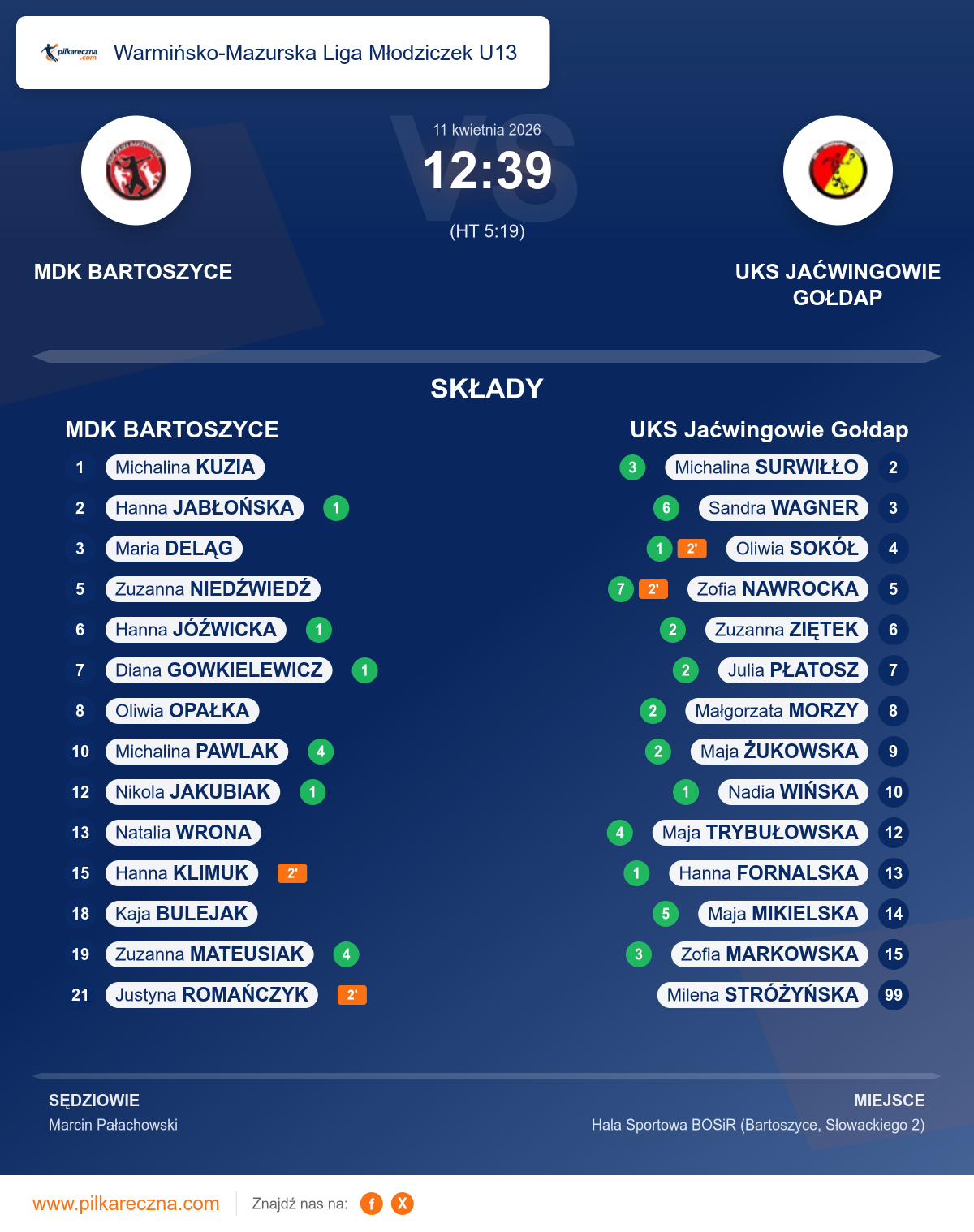 MDK BARTOSZYCE 12–39 UKS Jaćwingowie Gołdap
