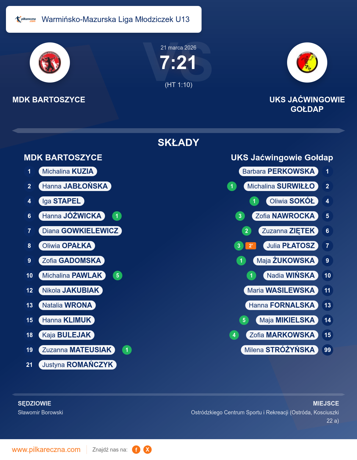 MDK BARTOSZYCE 7–21 UKS Jaćwingowie Gołdap