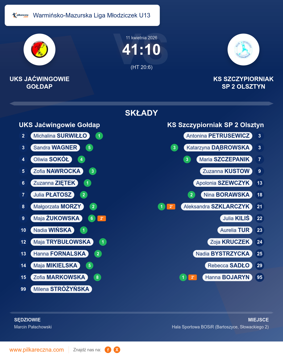 UKS Jaćwingowie Gołdap 41–10 KS Szczypiorniak SP 2 Olsztyn