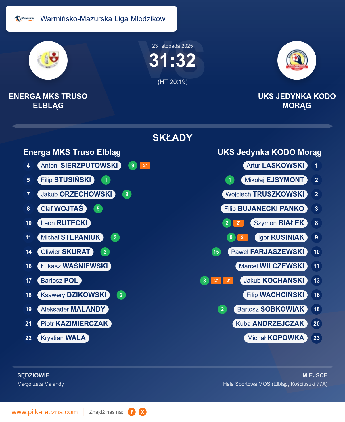 Energa MKS Truso Elbląg 31–32 UKS Jedynka KODO Morąg