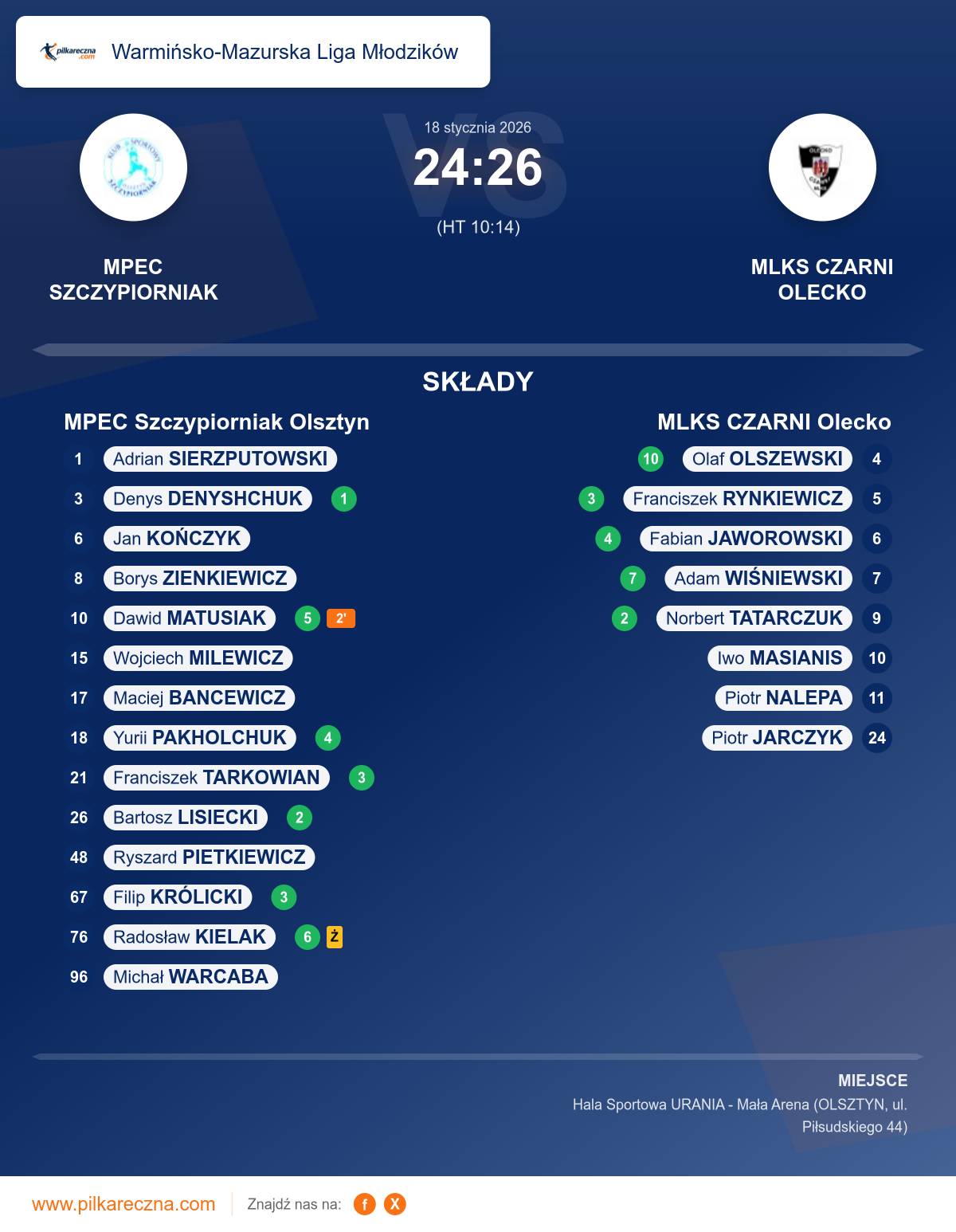 MPEC Szczypiorniak Olsztyn 24–26 MLKS CZARNI Olecko
