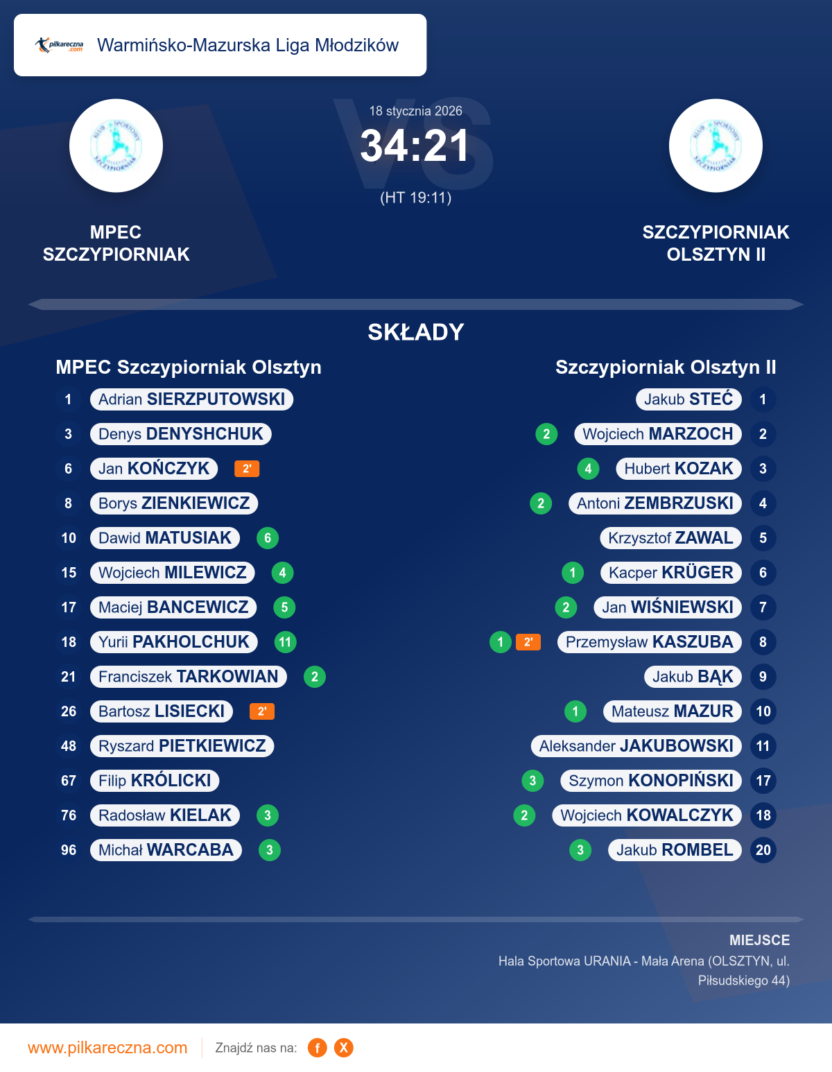MPEC Szczypiorniak Olsztyn 34–21 Szczypiorniak Olsztyn II