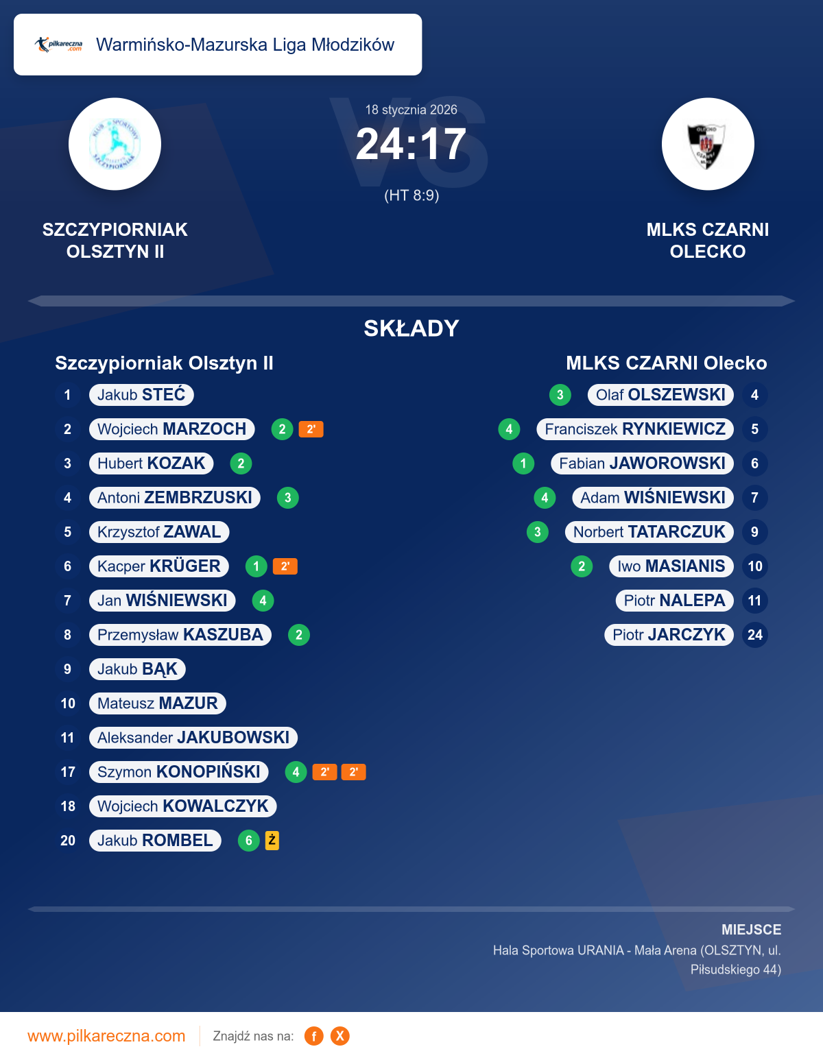 Szczypiorniak Olsztyn II 24–17 MLKS CZARNI Olecko