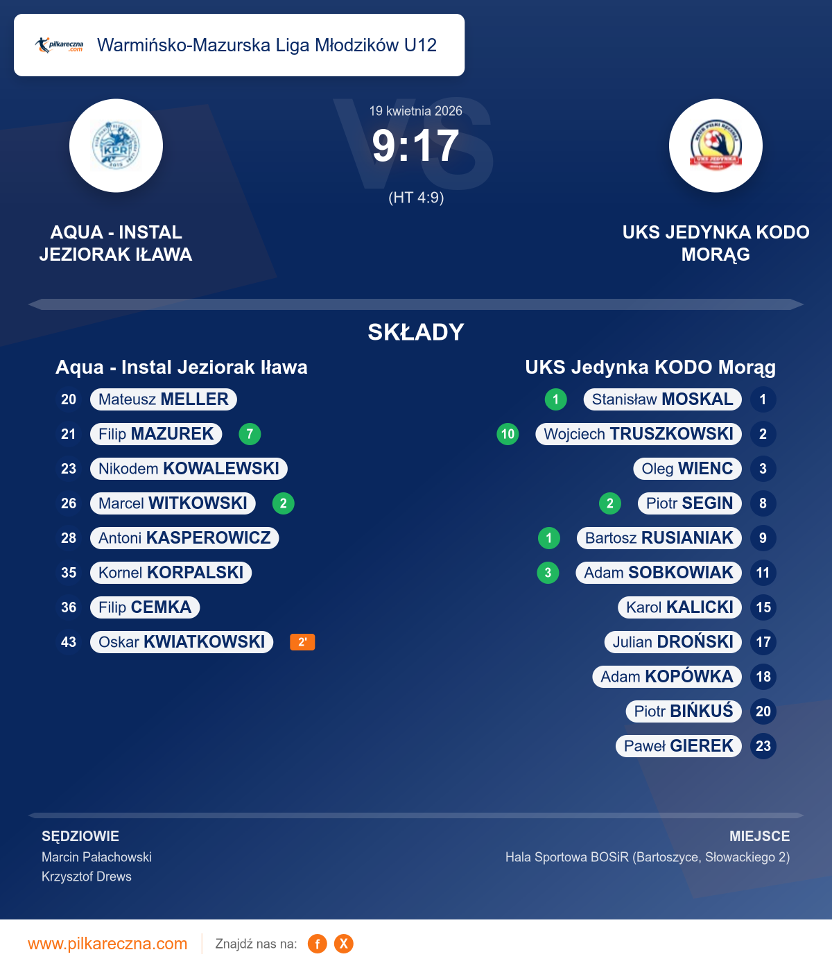Aqua - Instal Jeziorak Iława 9–17 UKS Jedynka KODO Morąg
