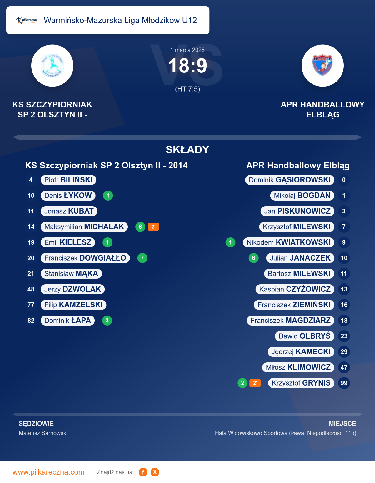 Sędziowali: Mateusz Sarnowski